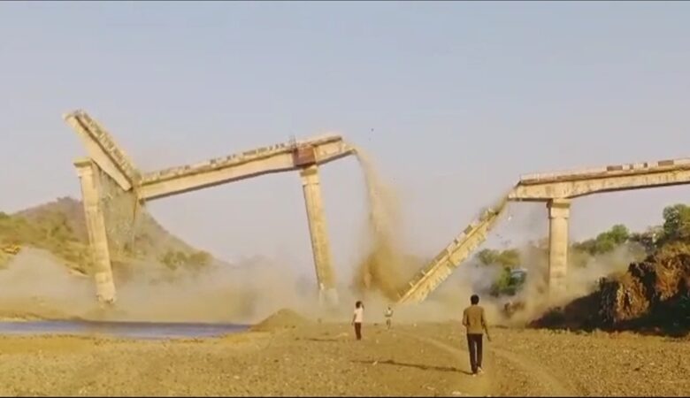 बड़वानी जिले में गोई नदी में बने 48 वर्ष पुराने पुल को विस्फोट से ढहाया